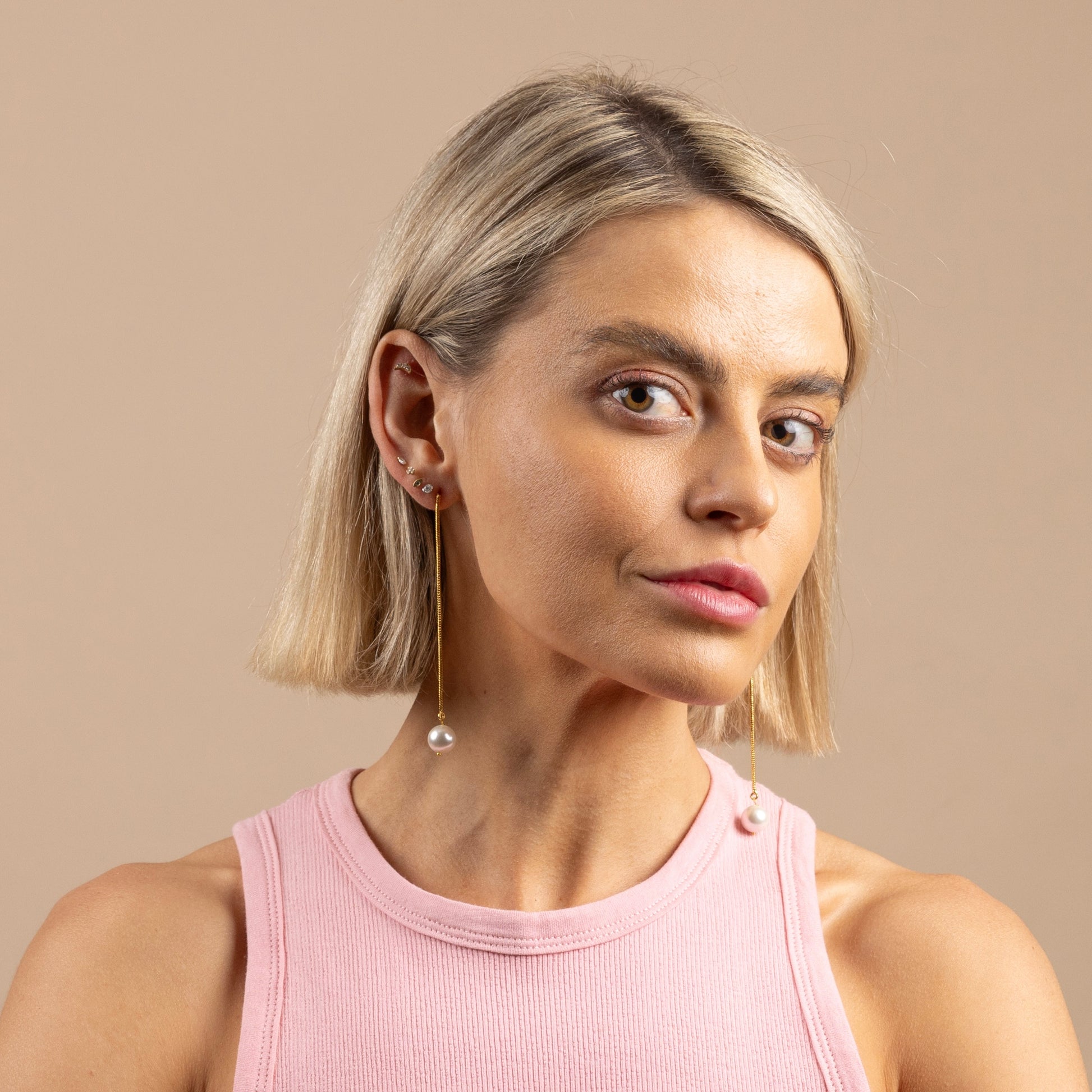 These elegant dangle earrings feature a single gold tassel that gracefully suspends a single, lustrous white pearl. The minimalist design and polished finish make these earrings a versatile accessory, perfect for both everyday wear and special occasions. Their timeless appeal ensures they will be a cherished addition to any jewellery collection.